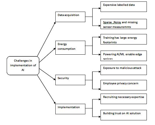 OneofthechallengeinimplementationAIis datausedto trainsupervisedandunsupervisedlearningmodel isofhigh qualityandaccuracywhich requiresacquiring data require preprocessingbeforeusedtoensure thatthe AI algorithms arereliableandeffective.Labeleddataiscostlyduetotime required to do so. Sometimes exposure to some adverse manufacturingenvironmentleadstosensordriftwhichbias collecteddata.Alsotakingregularmeasurementiscostlydue toassociatedcostofdatastorageandtransfer.
