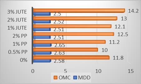 Figure 1: MDD and OMC values of samples at different fibre contents