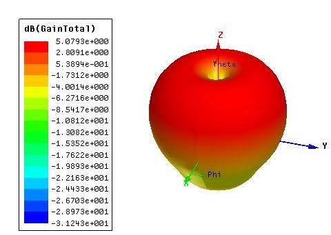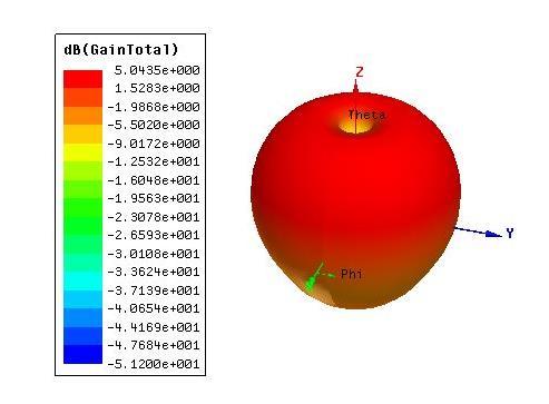 The antenna bandwidthsignificantlyimproved byadding conductivevias shortenthe lowercircularpatchwiththe ground plane. The total of 19 conductive vias are shorted symmetricallyloadedaroundthezaxis. Theviasholewas made up of 0.6 mm radius. The figure 7 and the figure 8 Showsthedifferenceintheradiationpatternwhenthereare no vias and with vias respectively. The figure 9 and 10 showsthedifferenceofreflectioncoefficientwithdifferent numberofconductiveviasandwithdifferentradiussize.
