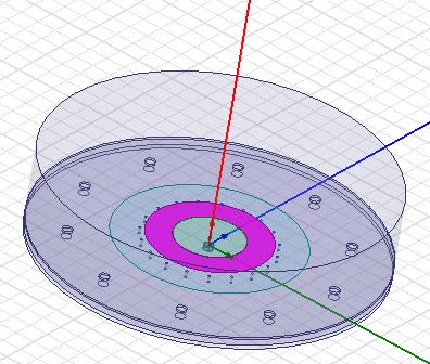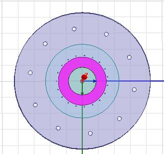 Thetwosubstrateareholdtogetherby10plasticscrewwith radiusof2.5mmwhicharesymmetricallyloadedaroundthe z-axiswithanangleof36Ëšfromthecenter.Theantennaisfed by a coaxial probe with a 50 ohm impedance and has a clearanceholeofradius2.0125mmforimpedancematching. The upper circular patch is surrounded by, a coupled annularring,whilethelowercircularpatch,isinsertedby19 conductive vias to achieve a wide bandwidth. The lower circular patch is shorted by 19 vias symmetrically loaded aroundthezaxis.