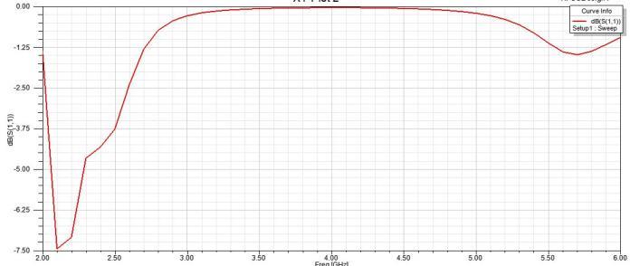 AsDiscussedbyaddingtheangularringaroundtheupper circularpatchitwasobservedthatthebandwidthincreased. This occurs as a result of the circular patch When activated, the annular ring may also be stimulated concurrently. via coupling of energy. Because of the variationsinsizebetweenthetheresonancefrequenciesof theannularringandthecircularpatcharedistinctfromone another.Byadjustingthecircularpatch'ssize,theannular ring'ssizeandthespacebetweenthem,Itispossibletoshift theirresonancefrequenciesclosetooneanotherother,then alargebandwidthisachievable.