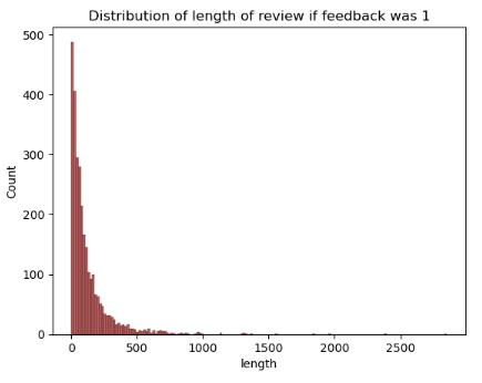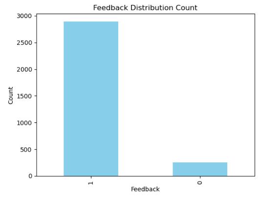 Afeedbackvs.countbargraphwascraftedtounveil the distribution of feedback within the dataset, showcasingthefrequencyofeachfeedback.Here, feedback 1 signifies positive reviews, while feedback0denotesnegativesentiments
