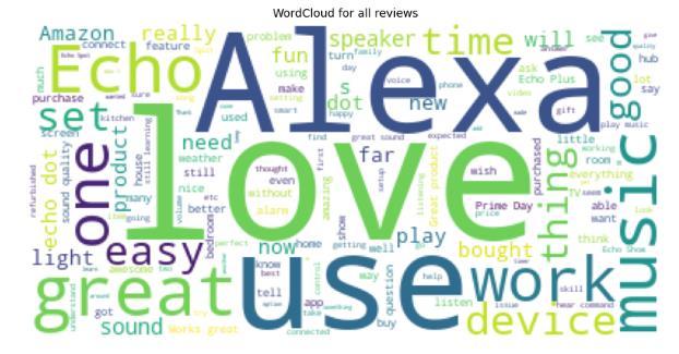 A wordcloud was drawn for all reviews with maximum wordsof150.Someofthehighlightedwordswere“Alexa”, “Love”,“Use”,“Echo”