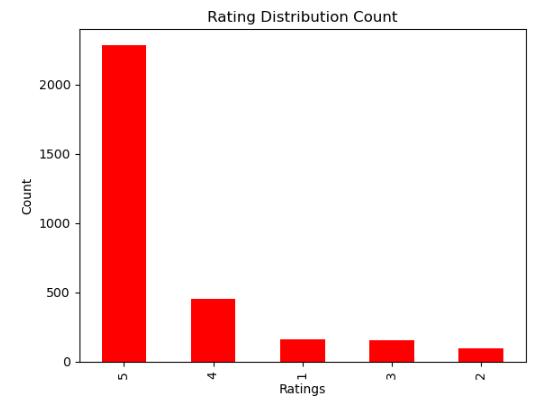 A bar graph displays the distribution of ratings, showcasingthefrequencyofeachrating(yaxis)to ratings(xaxis)categorytoprovideinsightintothe distributionofcustomersentiments.