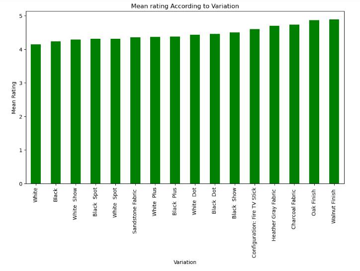 A bar graph was created to illustrate the mean ratingacrossdifferenttypesofAlexaproducts,with variationsdepictedonthex-axis.
