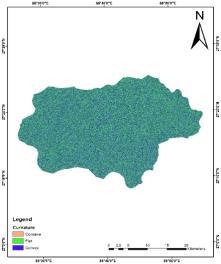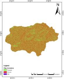 Plancurvature,oftenreferredtoasthecurvatureoftheslope surfaceinahorizontalsurfaceorthelineofelevationona topographical map (Fig. 6c), is what determines how the water will move in its flowing trajectory. Positive values implythatthecell'ssidesurfacesareconvex,whilstnegative values imply that the side surfaces are concave. A surface withazerovalue,ontheotherhand,isregardedaslinearor flat.