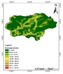 The density of drainage is a significant signal of the linear scale of the element in stream eroding topography and is specifiedasthetotalstreamlengthofallordersanddrainage areasandmayindicatethechannelspacingcloseness[18]; [49].Drainagedensityiscriticalasitleadstomasswasting andslopefailure.Thedrainagedensityinthestudyareais divided into nine classes up to 335 km2. In the ArcGIS software drainage density map with the help of data from CartosatDEMisprepared(Fig.6e)