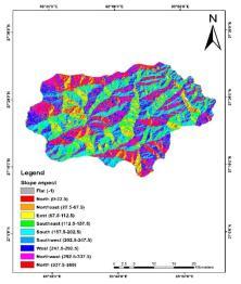 Duetotheslope'saspect(Fig.6m),whichcausesmeltingof the snow and water infiltration, increased freezing and thawing,andmassmovement,theaspectisakeyinfluencing element. In a certain area, landslides usually occur in a particulardirection[54].UsingArcGIS10.8,theaspectwas reclassifiedintoeightclassesafterbeinggeneratedfromthe DEM.