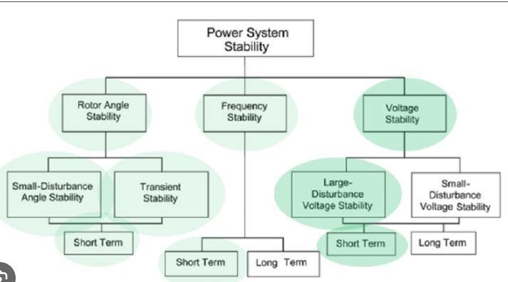 • Large Disturbances: Largedisturbancessuch as faults, suddenchanges in load demand, or thetrippingoftransmissionlinescandisrupt the balance between generation These disturbances can cause rapid changes in system dynamics, including generator rotor angles and voltages, which may exceed the stabilitylimitsofthesystem.