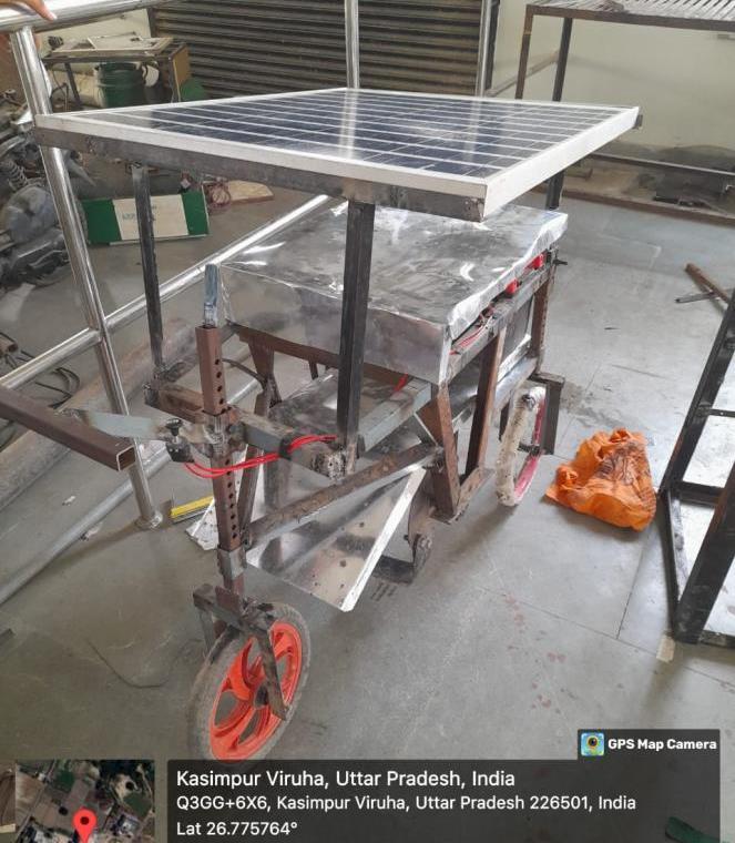 ThefabricationoftheSolarPoweredminiRotavatorwasa journey that began with a trip to the bustling Lat-us market, where the team carefully selected high-quality components for the Rotavator. Back in the department, they embarked on the design and assembly process, ensuring each component was precisely positioned and