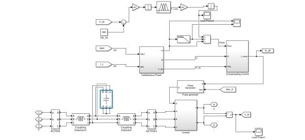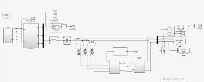 The figure 7 shows the solar PV system connected to grid through converters and inverters along with UPQC to improvevoltageperformanceatgrid.