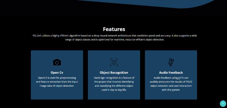 YOLOv5L variant chosen based on computational resources and accuracy requirements. After successful training, the model is integrated with GTTS to deliver auditory responses regarding identified objects. in realtime. A web application is developed using Flask to serve as the user interface, allowing users to access the camera feed, view detected objects, and receive audio feedback seamlessly. The system is deployed using Ngrok as it provides secure tunnels to our local server, allowing externalaccesswithout exposingourlocalmachinetothe internet.