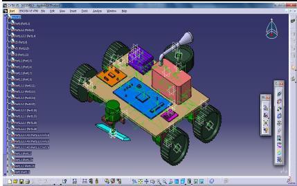 This Agribot is designed using CATIA V5 software. This software is used in automobiles, aerospace, goods, heavy engineeringetc.Itisverypowerfulsoftwarefordesigning complicated3dmodels,andapplicationsofCATIAVersion5 likepartdesign,andassemblydesign.