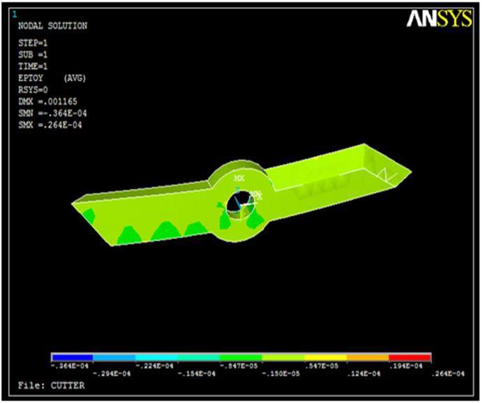 Stress is at the fixing location (Minimum Stress whichisacceptable),thevaluewhichisverylesscompared to yield value of Aluminum & Mild steel; this is below the yieldpoint.Themaximumstrain,thissolutionsolvingwith thehelpofAnsyssoftwaresothatthemaximumstressisless .so we can conclude our design parameters are approximatelycorrect.