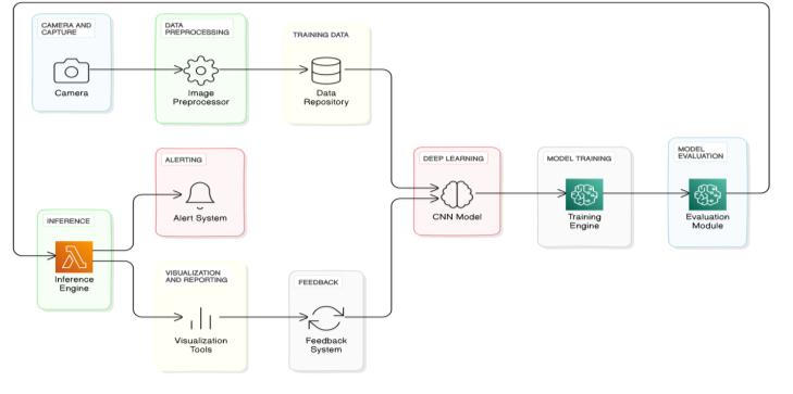 To continually enhance the system's performance, a feedbackloopisestablished.Inputfromhumaninspectors andupdatestothetrainingdatacontributetorefiningthe deep learning model over time, thereby improving its accuracyandreliability.