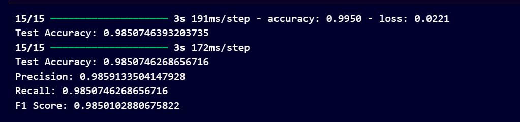 Our test set evaluation metrics demonstrate the trained model's remarkable performance. It properly identified every sample in the test set, earning a high accuracy score of 100%. The classification report's precision, recall,andF1-scorevaluesareall100%,showingthatthe model properly identified each class's samples without makinganyerrors.
