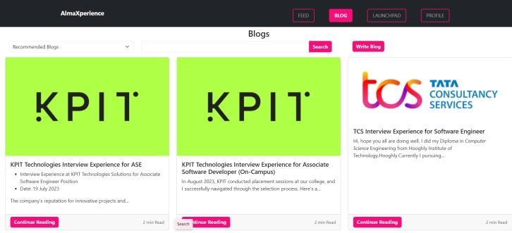 • On-CampusCompanyExperienceBlogs:Createa dynamic blog-like section where students can access oncampus company information and their exam pattern, selection process, and work culture from alumni. Implement keywordbased content filtering to ensure the qualityandrelevanceofsharedcontent.