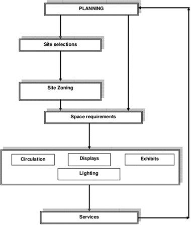 Planningamuseumentailsorganizingboththephysicalarea where the collection will be kept and the institution's real mission.Thelayoutanddesignofmuseumsdifferdepending on the collections they host, but generally speaking, they followtheguidelinesofcreatingaplacethatisaccessibleto thepublicandeffectivelyshowstheselectedobjects.