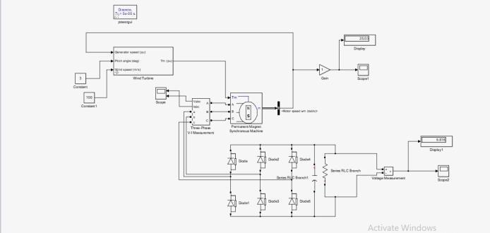 TheMATLABSimulationalsoentailsexaminingtheelectrical propertiesoftheconverteritselfaswellasthewindturbine. This entails modeling the behavior of the converter in convertingthefluctuatingACoutputtostableDCpowerand comprehendingthewindturbine'spoweroutputatdifferent windspeeds[17].Tofullycapturethesystem'sperformance and optimize its design for efficiency and reliability, the simulation must also take into account variables like converterefficiency,controlalgorithms,andgridintegration.