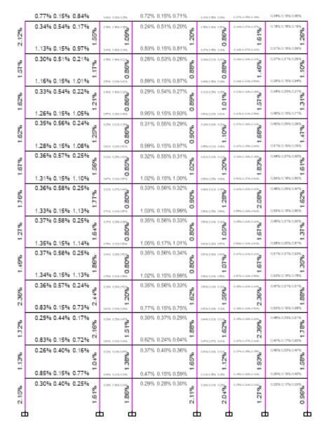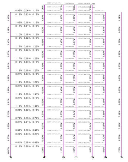 Crack widthisperformedin non-lineartypeofanalysisin strengthloadcombination.Themoment(m11)indirection1 and the moment (m22) in direction 2 is calculated using serviceenvelope.Theareaofsteelrequired(ast)iscalculated using strength combination in both direction 1& 2. For isolated footing only bottom reinforcement is given & for combinedfootingbothtopandbottomisgiven.Maximum crackwidthallowedis0.2mm.