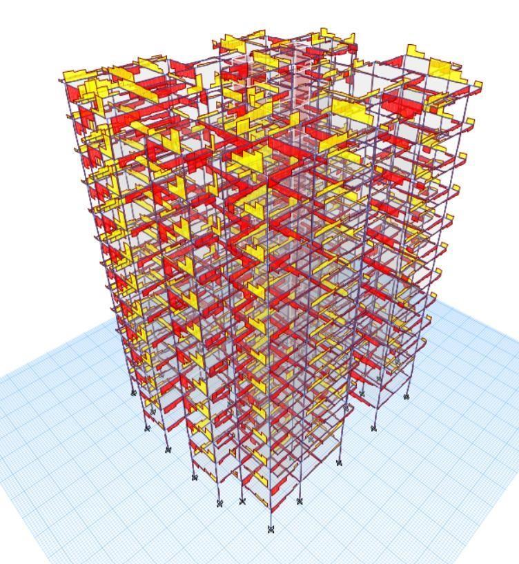 Inthecomplexprocessofplanning,analyzing,anddesigning aresidentialbuildingwithtwobasements,agroundfloor, and nine additional stories, a methodical approach is essential for a smooth progression from conception to completion.Theinitialplanningstageentailsthoroughsite selection, considering factors like accessibility, utility availability, and compliance with zoning regulations. Concurrently,clientneedsarediligentlyevaluated,layingthe groundwork for subsequent design choices. The analysis phase, conducted with ETABS software, is crucial for ensuringthestructuralsoundnessandsafetyofthebuilding. It involves assessing load-bearing requirements and conducting detailed load calculations, covering live loads, dead loads, and other pertinent factors. ETABS is also employed for seismic analysis, ensuring compliance with