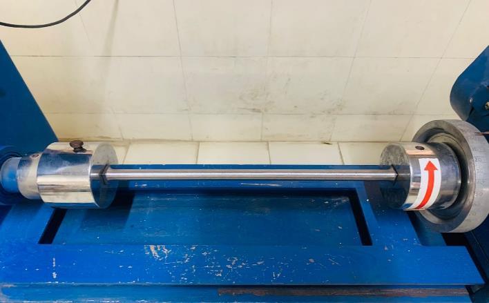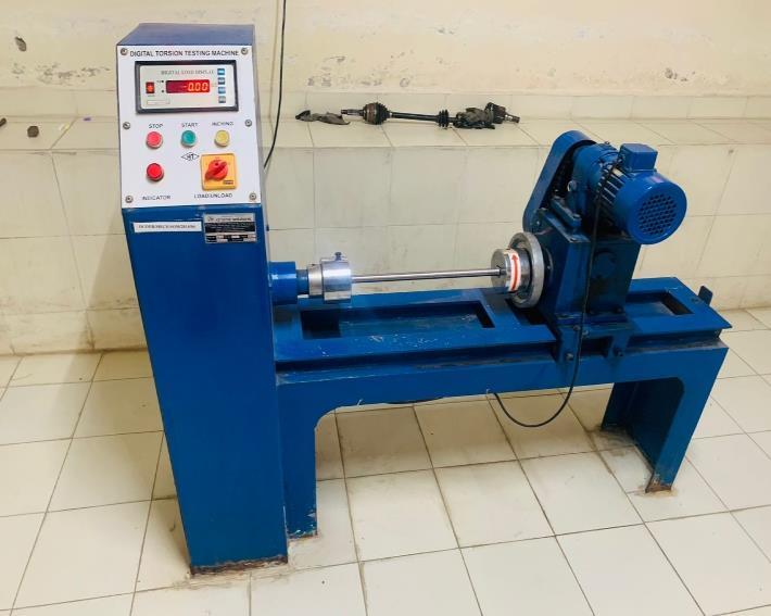 Thetestingwasbeingperformedbyusonatortionaltesting machine.Weperformedthetorsiontestonthespecimenof material AISI4130of total lengthof 540mm with the test piecelengthof400mm.Thetestingwasperformedtocheck for the material strength when it undergoes a torsional momentwithmagnitude100N/m.Therequirementsfrom thetestingwereofthepermissibletorqueandtheangleof twistforthatamountoftorque.Itwasanon-destructivetest inwhichweappliedatorqueofmagnitude120N/msoasto gettheangleoftwistofthespecimen.