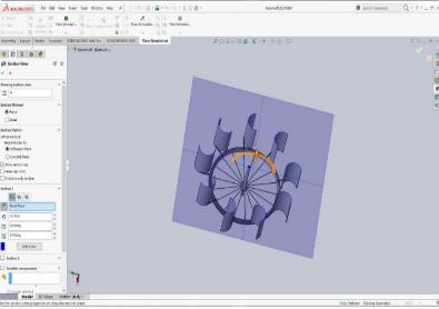 Utilizing Soldiworks Flow simulation software,thestressesandtorquethatwillbeappliedtothe wind turbine design are computed. The boundary conditions are given by us. The entrance, rotor, outlet, and tunnel wall have already been identified, and named selections have been made. We will enter the wind direction and speed and specify that the inlet is of the "velocity inlet" kind. We indicate that the rotor is of type "interior,"thetunnel wallisoftype"wall,"andtheoutletis of type "pressure outlet." Make it clear that a gauge pressureof zeroservesastheoutlet'sboundarycondition. Thisimpliesthatthepressureattheoutlet,whichisrather remote from the rotor, ought to match the pressure at the input.. We do not need to specify any reference values as the will not be asking the solver to compute any ratios or coefficients.