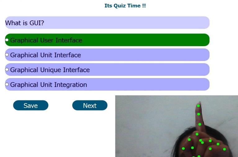 purposes, several research are being conducted. The actual movement of the human hand is what creates gestures. Hand gesture recognition is a natural and intelligent method of Human Computer Interaction (HCI). Theterm"computer-basedtesting,"or"CBT,"referstothe administrationoftestsusingcomputersasopposedtothe traditional pen-and-paper approach. The web or a computer-aided office can be utilized to regulate such a test online. Computer technology is used in computerbased testing (CBT), which means that applicants use computerstorespondtoquestionsdisplayedonmonitors.