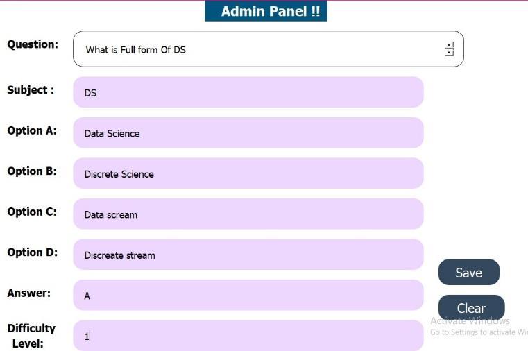 After logging in, admin will displayed page where he can addquestionstodatasetaccordingtosubjectsasshownin fig5.