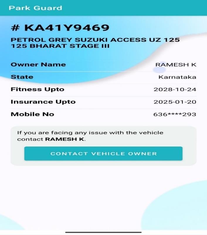 Fig - 3 DetailsoftheVehicleWithownerNumber(Masked)