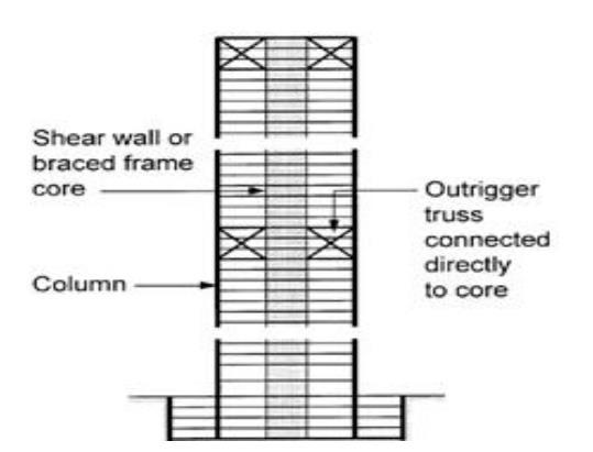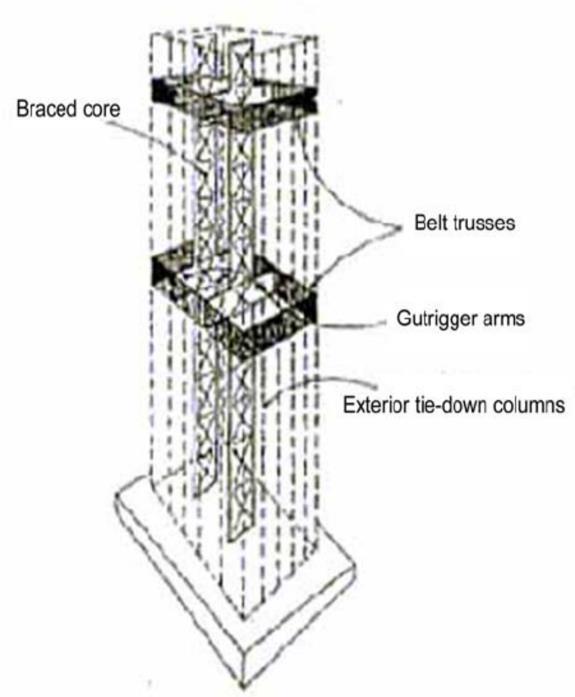 In the concept, Outriggers are attached to the braced frame or sheared wall directly in the core. But it is not necessaryforthecolumntobelocatedontheouteredgesof thebuilding.