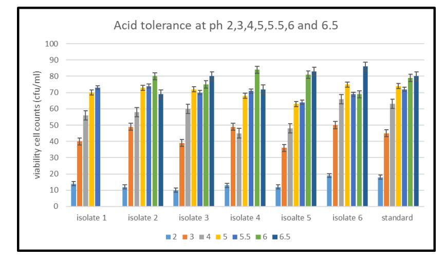 1:SurvivalofLABisolatesduring3hoursofincubation atpH2,3,4,5,5.5,6,6.5