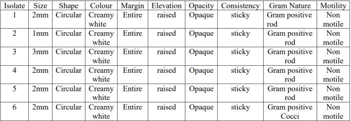 AfterchoosingisolatedcoloniesonMRS-cysmediumplates, thefollowingmorphologicaltraitswerenoted: