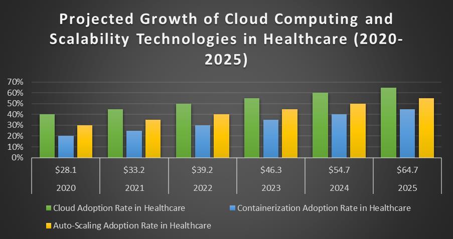 fromUSD28.1 billion in2020toUSD 64.7 billion by2025,ata CAGR of18.1%duringtheforecastperiod[22]. The needfor scalableinfrastructuretosupportgrowinghealthcareoperations,theincreasingadoptionofelectronichealthrecords(EHRs), andtelehealthservicesarethedrivingforcesbehindthisgrowth.