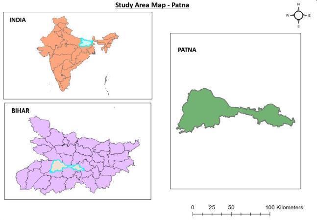 The area for the present investigation was selected in Patna town. The city of Patna is a large city and the capital of Bihar, whichislocatedinthenortheasternpartofIndia.ItisahistoriccitybuiltonthesouthernbanksoftheGangesRiver,lieson 25.5941°Nlatitude,85.1376°Eatanaltitudeof53m(174ft)abovemeansealevel.Thecityisspreadoveranareaofabout 3,202Squarekm.Accordingtocensus 2011populationofPatnais1,684,222millionandthecurrentestimate populationof Patnacityin2024is2,633,000 (5).