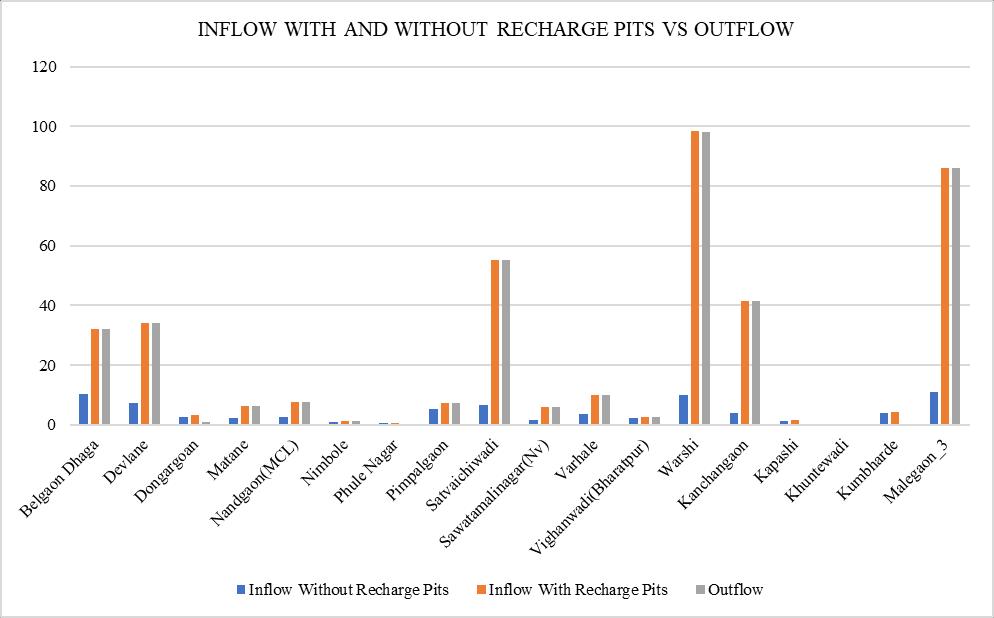 Chart -2:ChartofInflowwithandwithoutrechargepitsvsOutflowvaluesfor1yearsimulation