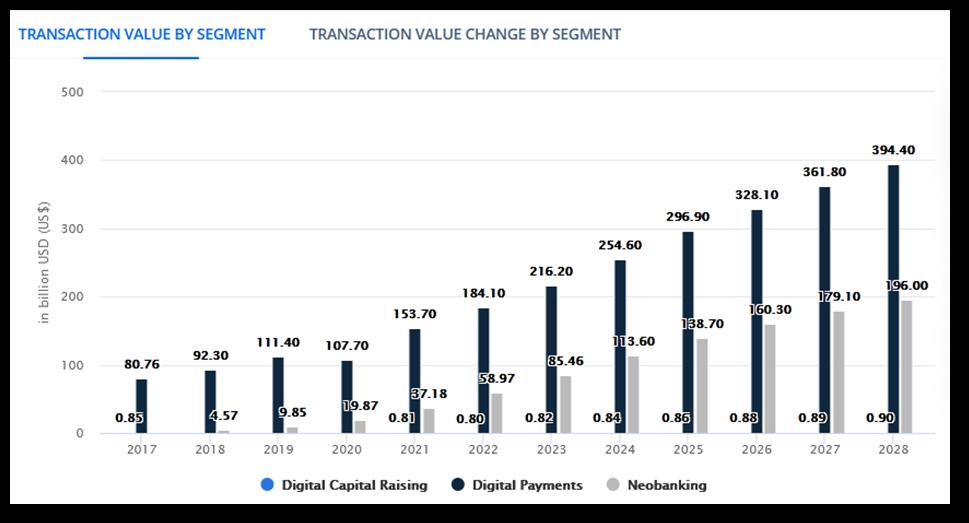 From the above two figures it is evident that by 2028 $394.90billionofdigitalpaymentsisboomingupwhereas $254.60 billion in the 2024 it shows the landscape of the