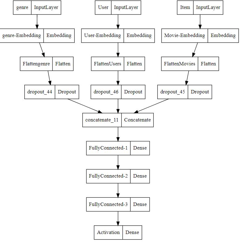 The core of the recommendation system is a deep learning model that processes large amounts of data to understand complex user preferences. The model will be trained on a dataset that includes user ratings, reviews, and metadata of movies.Byemployingconvolutionalneuralnetworks(CNNs) and recurrent neural networks (RNNs), the system will extractfeaturesfrombothuserprofilesandmoviecontentto accuratelypredictuserpreferences.