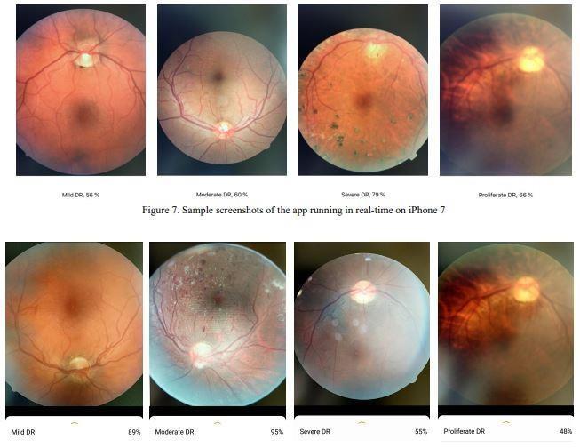S.Majumdera[8]-Adeeplearning-basedsmartphoneappfor real-timedetectionoffivestagesofdiabeticretinopathy-The use of deep neural networks in real-time on smartphone platforms to identify and categorize diabetic retinopathy from eye fundus images is shown in this research. This versiontakesintoaccounteachofthefivestagesofdiabetic retinopathy,expandinguponapreviouslypublishedversion. Thefirsttwodeepneuralnetworkstrainedareoneutilizing transferlearningandfundusimagesfromtheEyePACSand APTOS datasets for the purpose of identifying four phases andanadditionaltwoforfurtherclassifyingthefinalstage. Next, a demonstration of how these trained networks are incorporated into an Android and iOS smartphone app is provided, which enables real-time image processing from smartphonecameras.Smartphonescannowtakeandprocess fundus photos in real time thanks to the app's design accompaniedbycommerciallyaccessiblelensattachments. For first-pass diabetic retinopathy eye exams in outlying clinicsorplaceswithrestrictedaccesstofunduscamerasand ophthalmologists,areal-timesmartphonesoftwarehasbeen developedthatisbothaffordableandeasilyused.