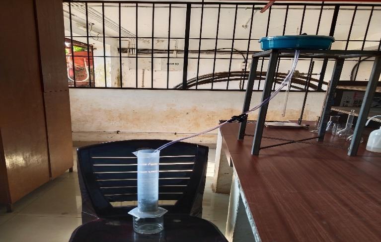 The service station wastewater was treated with sawdustactivatedcarbonbyvaryingtherateofflowas10 ml/min, 8 ml/min, 6 ml/min, 4 ml/min and 2 ml/min respectively. the time of collection of wastewater through the column setup after filtration was varied as 20 min, 40 min, 60 min, 80 min, 100 min respectively. The dosage of adsorbents was kept constant as 6g since the optimum dosageofadsorbentwere6ginthebatchadsorptionstudy.