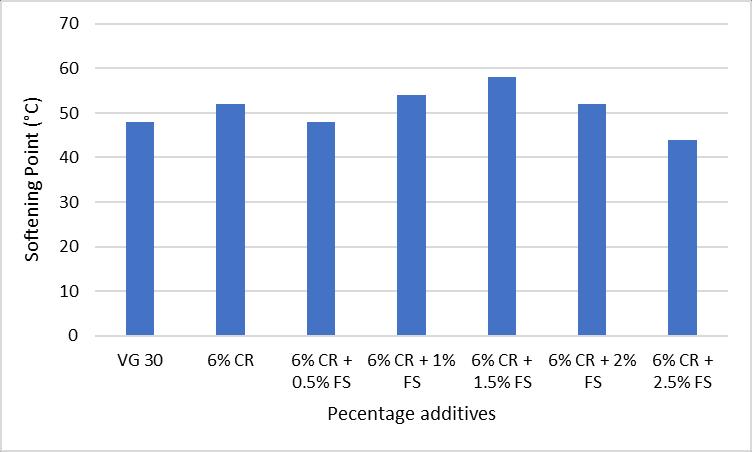result, it is observed that adding more than 1.5% fumed silicareducesthesofteningpoint.Increasedsofteningpoint indicates increased high-temperature binder properties. Binders with high softening point values tend to be more rigidandhardthanothers.Thisindicatesthatthebinderwill be more immune to rutting and degradation at higher temperatures[1].