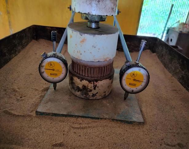 PlateLoadTestwascarriedoutfollowingtheISprocedure to analyze the load settlement characteristics of CGT infilled CSC under various placement depths. Two dial gauges were positioned on the footing plate, positioned oppositeeachother,torecordthereadings.
