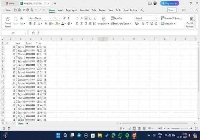 Step9:Inthisstep,ifthefaceisdetectedittakesattendance andmarksattendanceonexcelsheetwithname,id,andtime and excel sheet was saved with date. If the face was not detected,itdisplaysunknown.