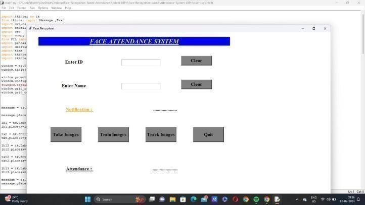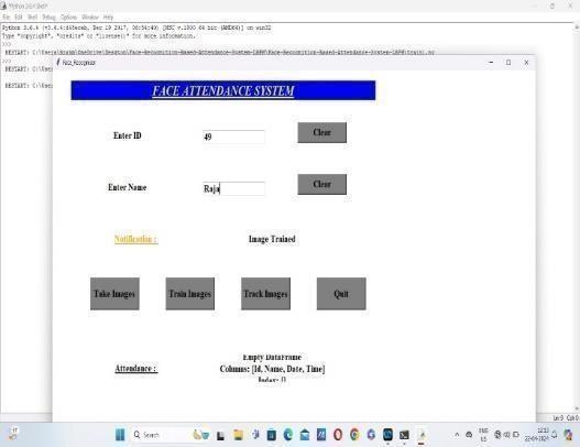 associated name and ID information. The above window shows how the project spontaneously detects and track the attendance of particular person.