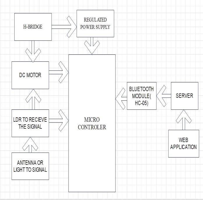The proposed antenna tracking system employs Arduino microcontrollers to coordinate the various system components. To achieve precise antenna orientation, DC motors will be used for automated rotation. Bluetooth connectivity will allow users to manually input specific antenna angles for targeted signal acquisition. Light Dependent Resistors (LDRs) will serve as sensors for detecting signal strength, feeding this data back to the Arduinotoenableautomatedtrackingadjustments.