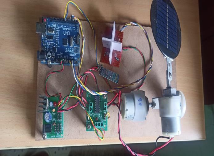 Using LDR feedback, the Arduino activates DC motors to align the antenna continuously. A closed-loop control algorithmmonitorssignalstrength,adjustingazimuthand elevation angles accordingly. This iterative process maximizes signal reception, maintaining optimal connectivity with the signal source. Beyond automated tracking, the system offers manual control via Bluetooth communication. Users can connect smartphones or computers to the Arduino, manually adjusting antenna angles. This feature complements automated tracking, particularlyusefulinscenarioswherepreciseadjustments areneeded,likesignalobstructionsorsourceswitching.