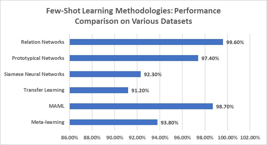 For few-shot learning, graph neural networks (GNNs) and memory-augmented neural networks (MANNs) look like good options. They created a GNN-based few-shot learning model that did better than a normal network, which only got it right 62.5% of the time on the Mini-ImageNet dataset, with a 5-way 1-shot accuracy of 66.4% [29]. It did better than a matching network, which only got it right 60.5% of the time, on the Mini-ImageNet dataset that Munkhdalai et al. used to make their model [30]. It hit 67.2% of the time on a 5-way 1-shot. Another interesting direction for few-shot learning is metareinforcementlearning.AmethodbyHumpliketal.calledmeta-reinforcementlearninghada5-way1-shotaccuracyof63.1% ontheMini-ImageNetdataset.ThiswasbetterthanamethodcalledMAML,whichhadanaccuracyof48.7%[31].