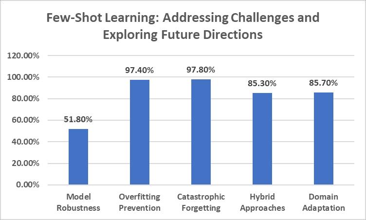 likehealthcare, manufacturing,publicsafety, and personalizedAIservices.Few-shotlearningcan changehow AIisbuiltand how it can be used in places with little data. These methods and techniques show how this can happen. A lot of different methodsandtechniquesaretalkedaboutinthisstudy.Thesehaveworkedverywellinalotofdifferentareas,likehealthcare, manufacturing, public safety, and personalized AI services. Few-shot learning can change how AI is built and how it can be usedinplaceswithlittledata.Thesemethodsandtechniquesshowhowthiscanhappen.Eventhoughthereareproblems,like model generalizability, overfitting risks, and catastrophic forgetting, researchers are still working to find solutions by using new methods and combining few-shot learning with other AI methods. As the field moves forward, we can expect more and more resilient, flexible, and smart AI systems that push the limits of what is possible with limited data. These systems will ultimatelychangethelandscapeofAIandhowweuseandbenefitfromitinthefuture.