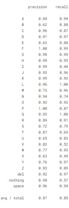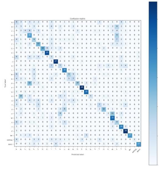 Theclassificationreportprovidesdetailedmetricssuchas precision, recall, f1-score, and support for each of the 25 classes in which the model was trained. These metrics evaluatetheaccuracyofpredictionsmadebythemodelon the test set data. Additionally, the report includes overall accuracy,aswellasmacroandweightedaverages,toprovide acomprehensiveassessmentofthemodel'sperformance.