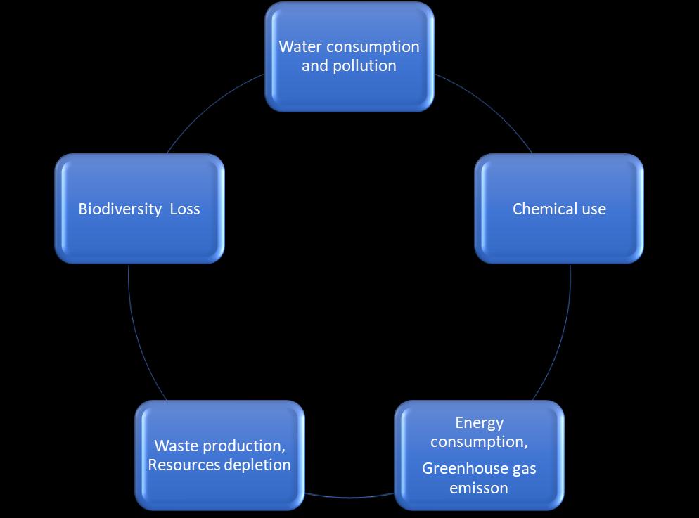 Biodiversity Loss: The loss of habitat and biodiversity may result from the growth of agricultural area for fiber production, such cotton growing. In addition, aquatic life and other species may be negatively impacted by the contaminationofecosystemswithchemicalsanddyesused intextileproduction.